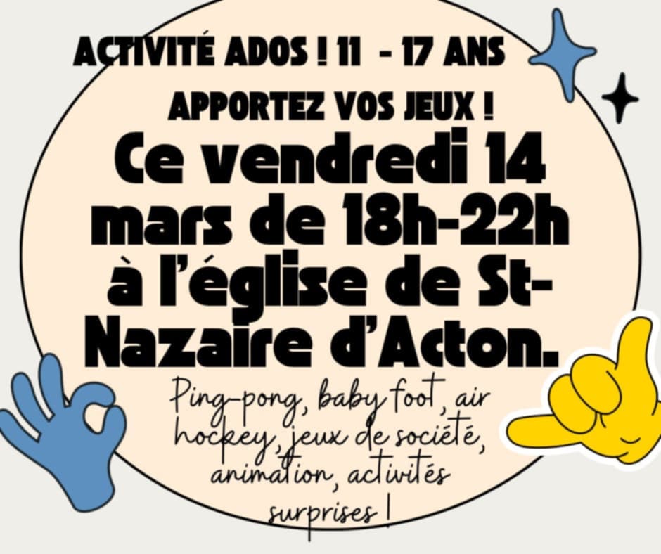 Activté 11 – 17 ans Ce vendredi 14 mars de 18-22h