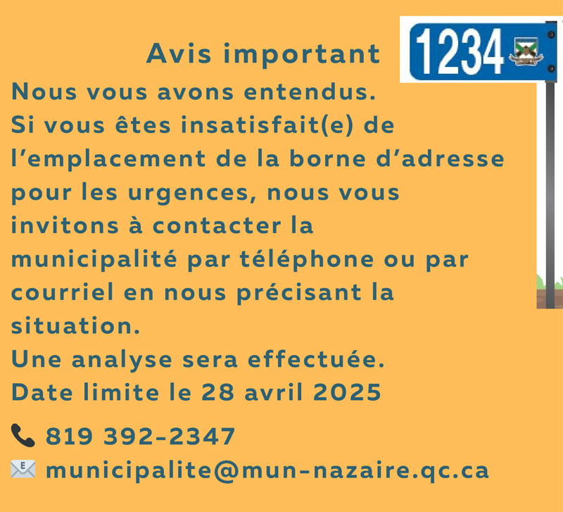 © 2024 Copyright, tous droits réservés - Municipalité de Saint-Nazaire d'Acton. Conception Idéocom