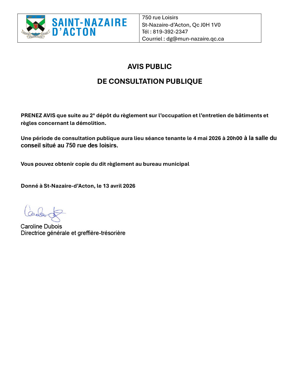 © 2024 Copyright, tous droits réservés - Municipalité de Saint-Nazaire d'Acton. Conception Idéocom
