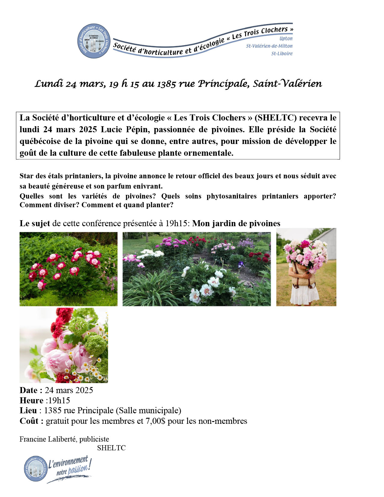Conférence de la société d’horticulture, lundi 24 mars 19h15