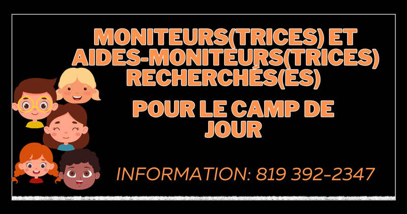 Moniteurs(trices) et aides-moniteurs(trices) recherché(es) pour le camp de jour