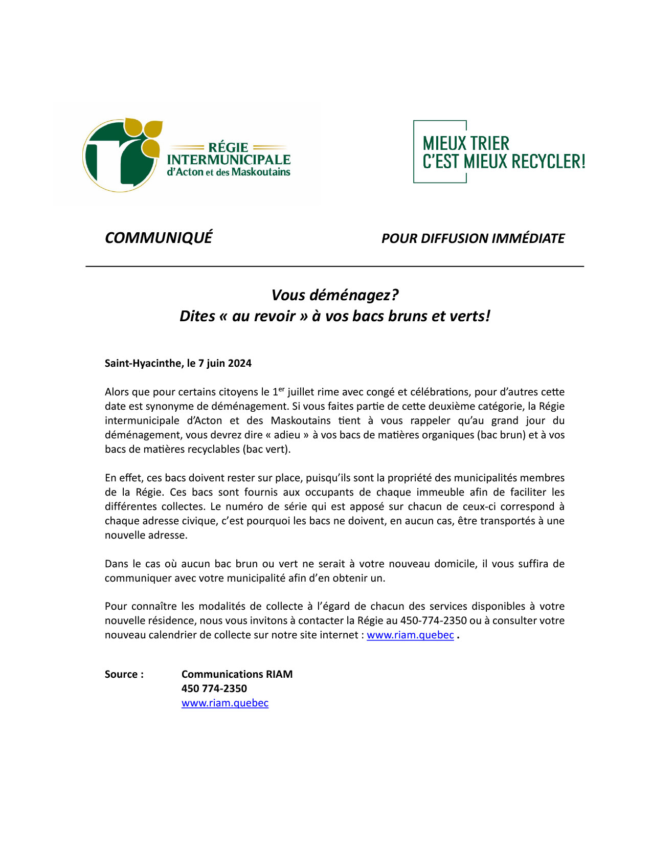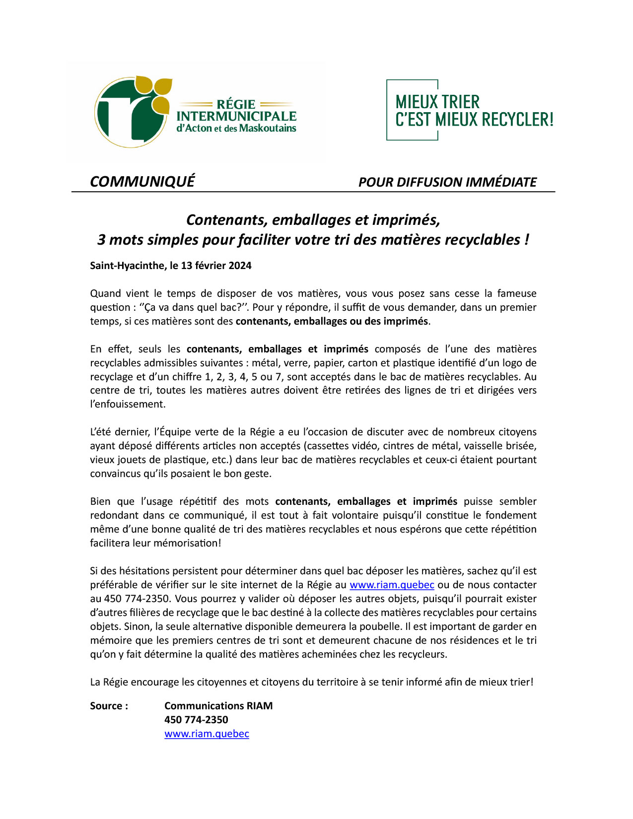 Municipalité de Saint-Nazaire d'Acton > Ordures, recyclage, matière organique, gros rebuts