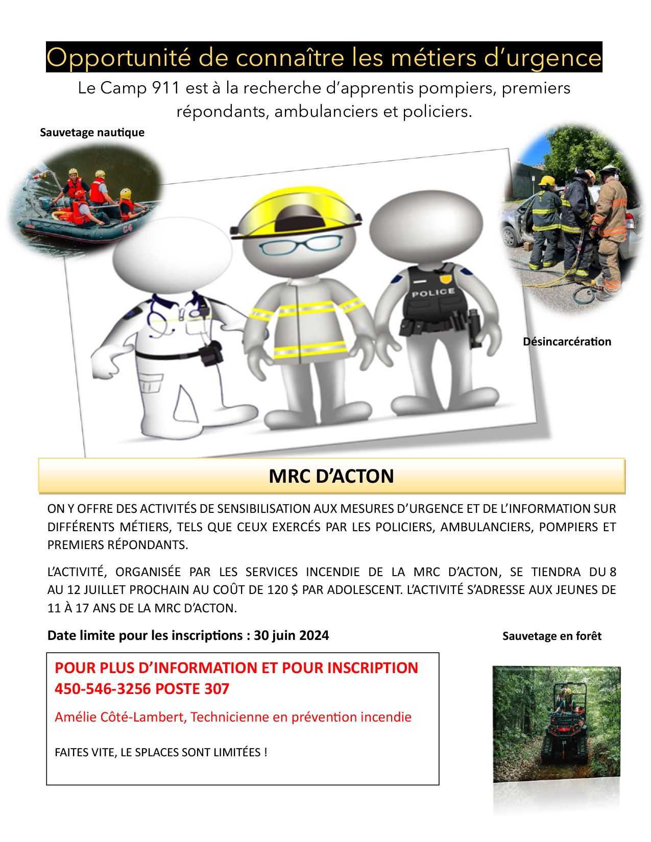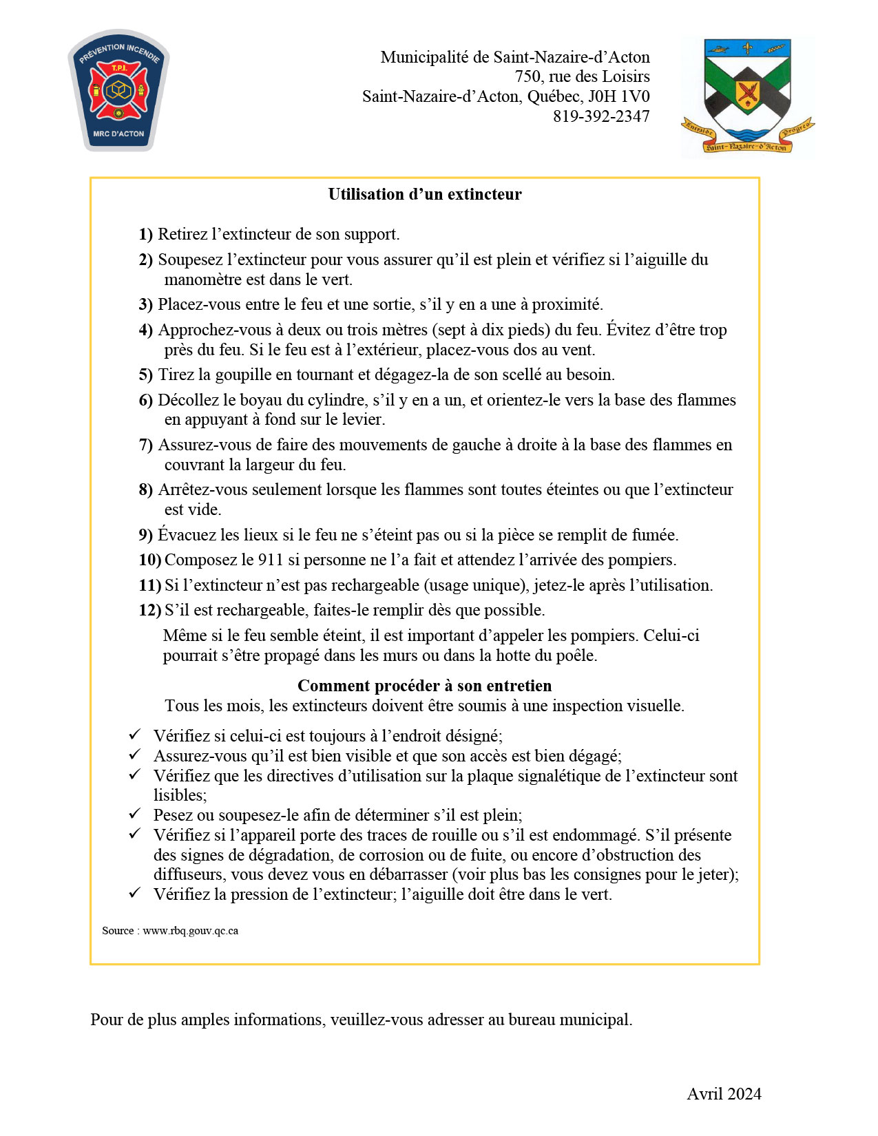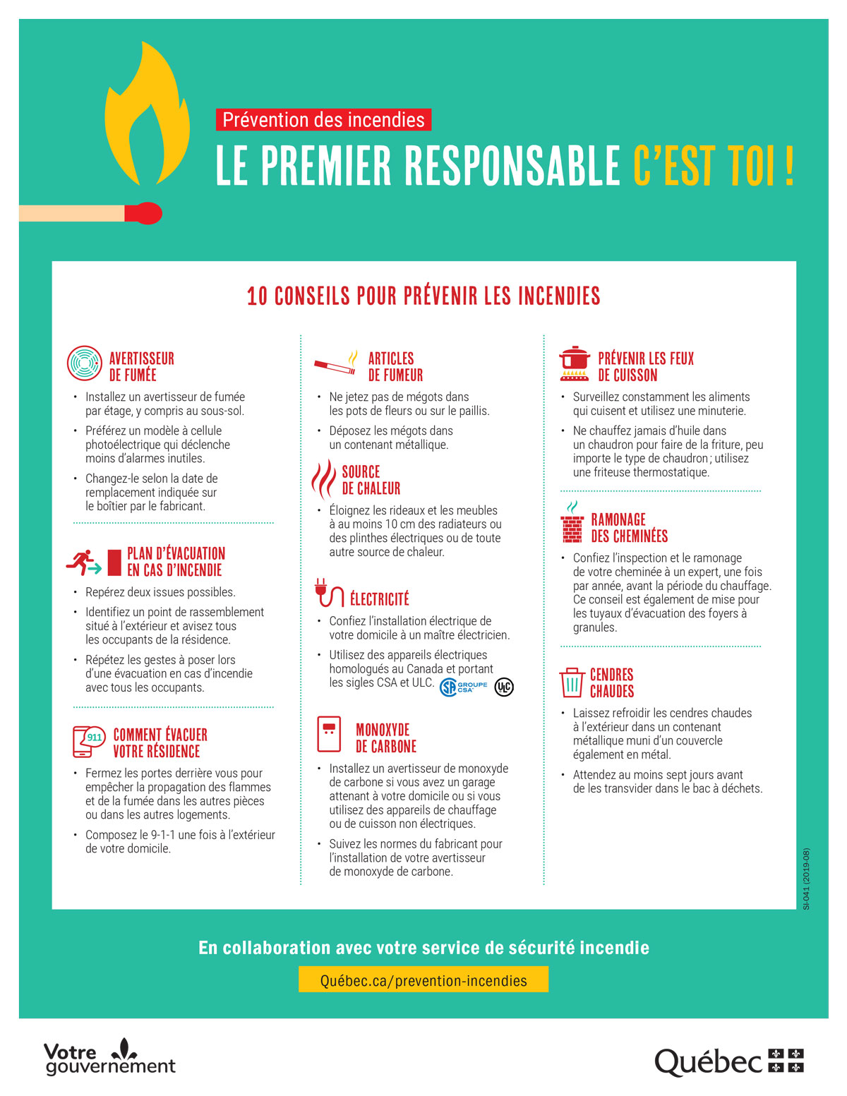 Pour plus d’informations consulter la section service incendie et visitez le site du Ministère de la sécurité publique.