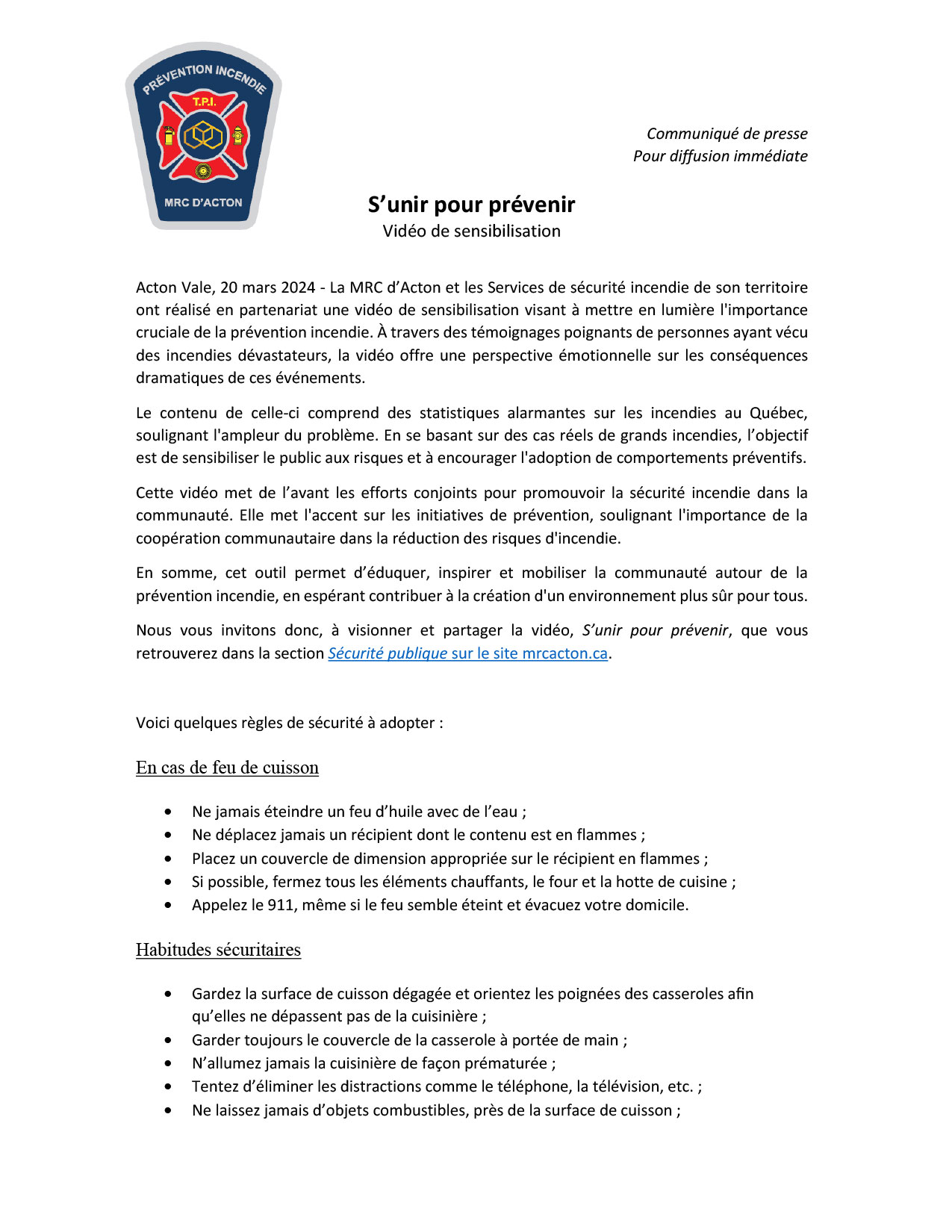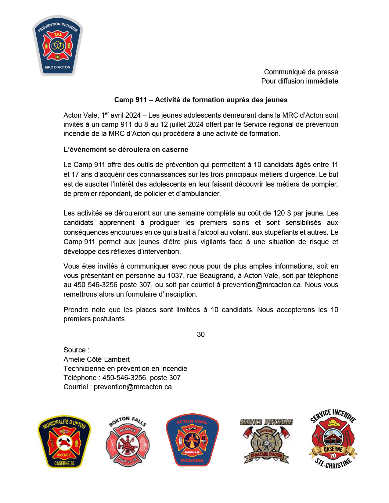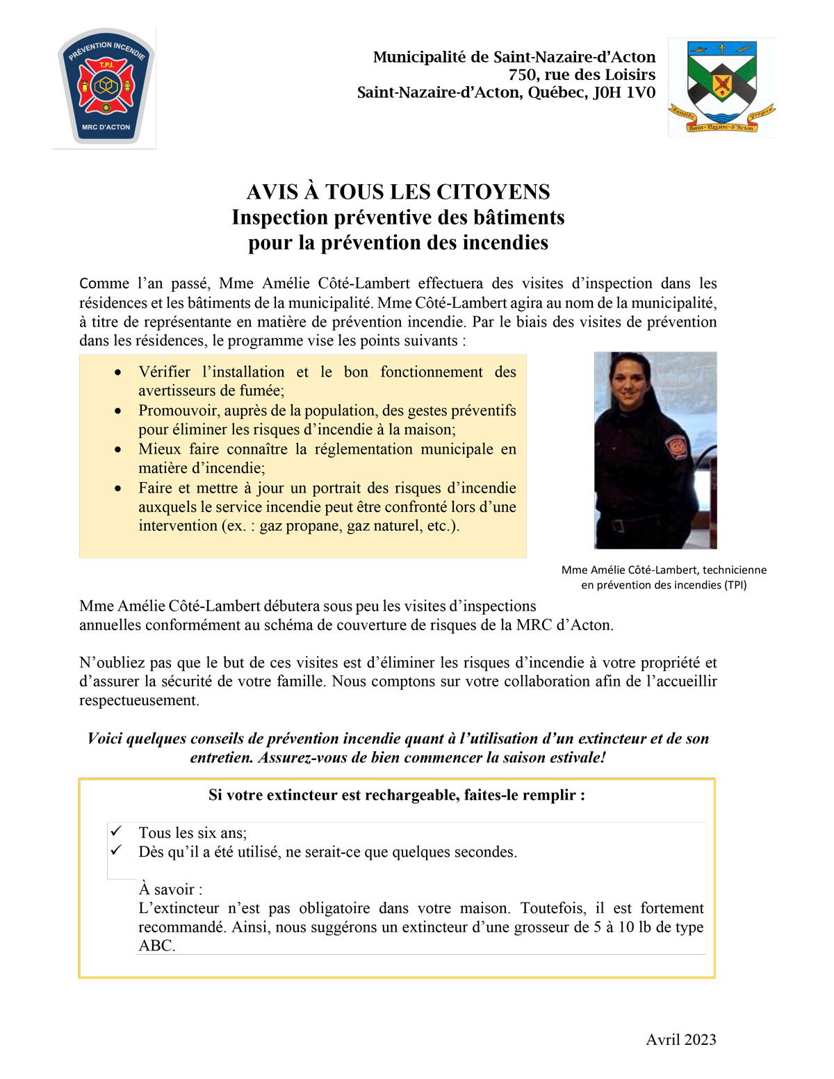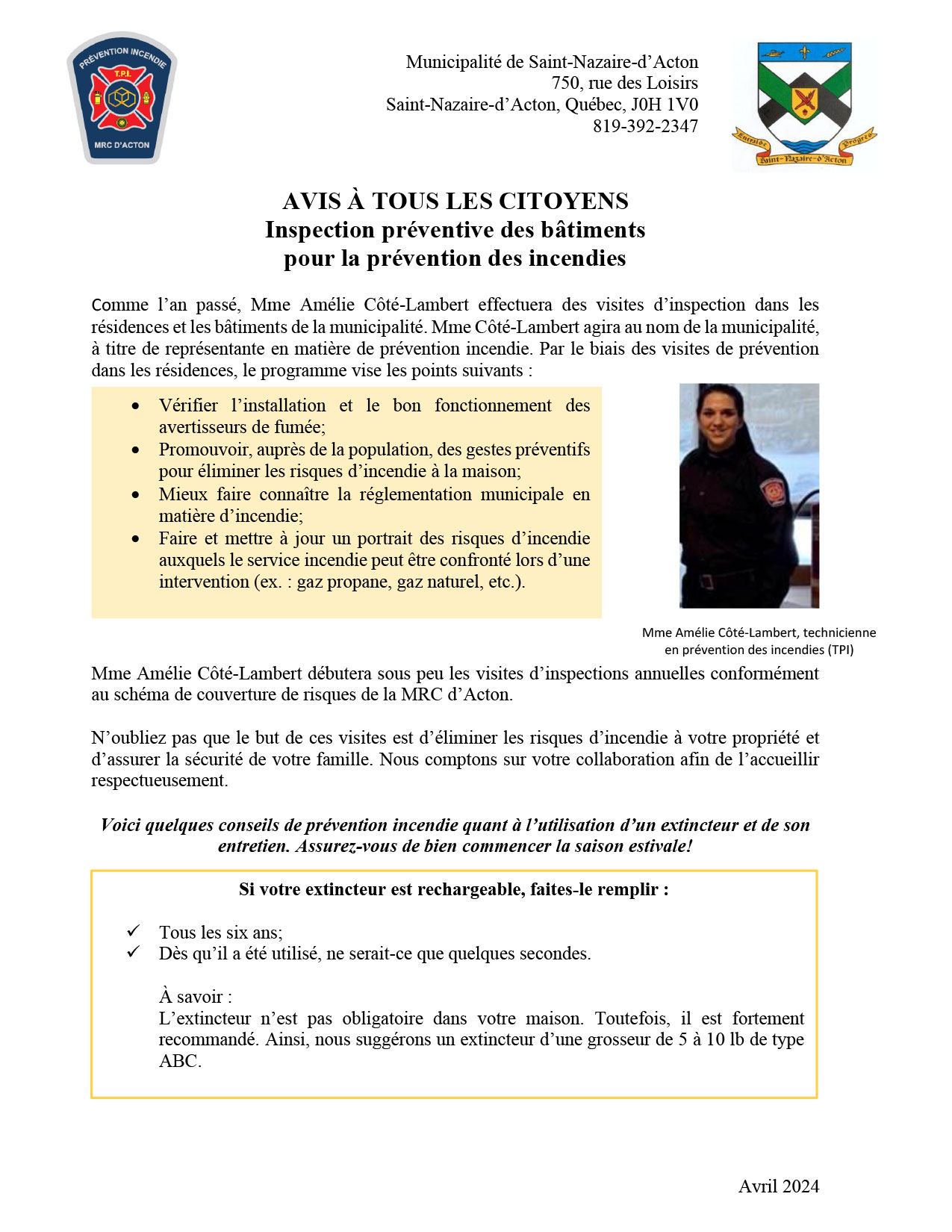 Pour plus d’informations consulter la section service incendie et visitez le site du Ministère de la sécurité publique.