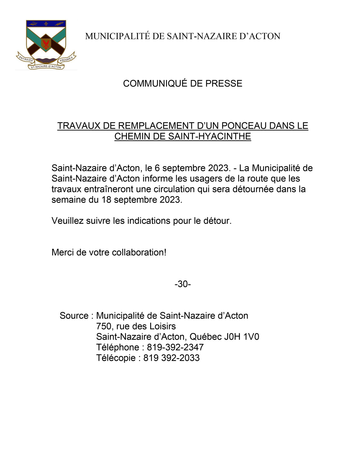 © 2024 Copyright, tous droits réservés - Municipalité de Saint-Nazaire d'Acton. Conception Idéocom